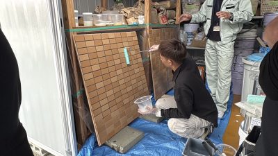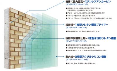 既存タイルの意匠を活かしながら外壁仕上げ材の剥落を防止する工法です。